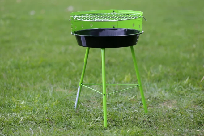 Klasika – vēl viena bleķa bundža uz trim kājiņām, tikai šai ir vāks, kas visu uzparikti padara līdzīgu lidojošajam šķīvītim. Taču vāks reizēm lieti noder. Vēl viens pluss, salīdzinot ar zaļo grilu, ir tas, ka šim bļoda ir dziļāka. Sliktā ziņa, ka lidojošajam šķīvītim kājas ir īsākas, tādēļ grilēšanas procesa laikā nāksies darboties tupus vai sēdus. Toties salikšanas un izjaukšanas ziņā šķīvītis ar lielu atrāvienu iekabina zaļajam konkurentam, kuram katra kājiņa stiprināma ar divām skrūvītēm un uzgriežņiem. Proti, šķīvītim katrai kājai ir viena paliela skrūve, bet uzgriežņu nav vispār, jo vītne ir iestrādāta pašā kājiņā. Tas mazina skrūvju pazaudēšanas risku, grilu izjaucot – ieskrūvē katru skrūvi savā kājiņā, un tur tās arī būs līdz nākamajai reizei. Ļoti praktisks grils, ko var glabāt bagāžniekā vai šķūnītī un paķert līdzi, ja esi izdomājis rīkot pikniku.