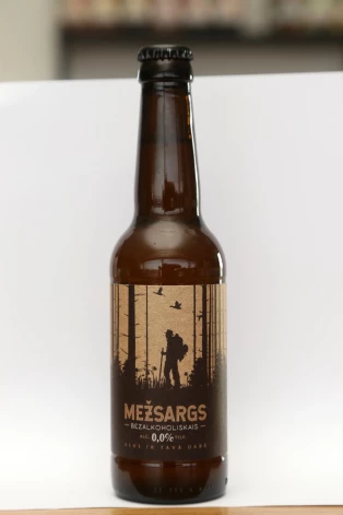 Stilīga pudele, kuras etiķete, tuvāk aplūkojot, gan rada jautājumu – kas ir tajā redzamais vīrs platmalē ar spieķi un mugursomu, kuram virs galvas lidinās, šķiet, pīles? Tiešām mežsargs? Vairāk gan izskatās pēc tūrista vai putnu vērotāja. Bet nebūsim piekasīgi, turklāt sauklis “Alus ir tavā dabā” te ir vietā un labi iederas. Ja, paraugoties uz pudeli, iedomājāties, ka iekšā būs tumšais alus, tad nāksies vilties – dzēriens ir gaišs, aromātā izteikti jūt apiņus, kas garšai piešķir rūgtumiņu. Rezultātā iznācis tāds kā IPA alus, lai arī ne tik izteikti kā Mežpils alus. Ja patīk rūgts alus, tad šis varētu būt pašā laikā.