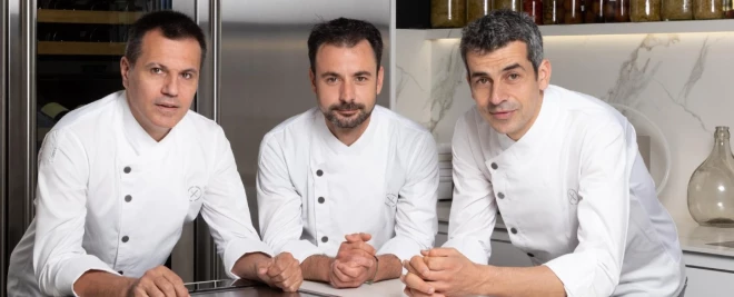 Raksturojums: 2014. gadā trīs pasaulslavenā spāņu šefpavāra Ferrāno Adria mācekļi apvienojās, lai Barselonā izveidotu restorānu ar nosaukumu "Disfrutar", kas spāņu mēlē nozīmē – Baudīt. Protams, te vislielākā uzmanība tiek veltīta Vidusjūras virtuvei, moderniem un sava skolotāja radītajiem recepšu akcentiem. Trīs vella kalpi ir Mateo Kasanjass, Oriols Kastro un Eduards Ksatrušs. Šobrīd pie "Disfrutar" žaketes ir piespraustas divas "Michelin" zvaigznes.