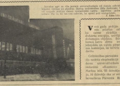 “Šoreiz telegramma, kas bija adresēta Ventspils universālveikala “Kosmoss” kolektīvam, bija neparasta. Tā sagādāja universālveikala kolektīvam lielu prieku. Latvijas KP CK, LPSR Ministru Padome un Augstākā Padome apsveica mūsu pilsētas veikala ļaudis Lielā Oktobra 46. gadadienā un arī ar uzvaru sociālistiskajā sacensībā. Rezumējot tās rezultātus III ceturksnī, izrādījās, ka vislabākos panākumus darbā guvis mūsu “Kosmoss”. Par to universālveikalam piešķirts republikas Tirdzniecības ministrijas ceļojošais Sarkanais karogs un naudas prēmija.”