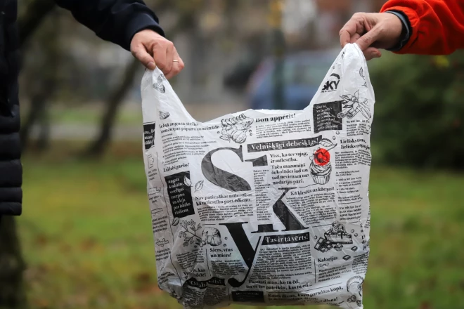Maisiņa pasūtītāji/ražotāji sasnieguši absolūtu lakonisma rekordu – izņemot veikala nosaukumu, nekādas citas informācijas uz maisiņa nav. Ne datu par to, cik tajā izmantots pārstrādājamas plastmasas, ne arī brīdinājuma nevilkt to galvā. Dizains ļoti nepretenciozs, teiksim tā.