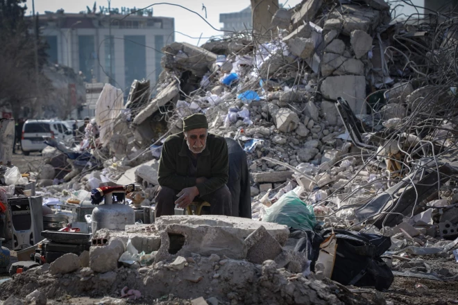 Turku sirmgalvis bezpalīdzīgi noraugās uz Kahramanramas pilsētas daudzīvokļu namu gruvešu haotisko grēdu – gandrīz astoņu magnitūdu spēcīgā zemestrīce ir noslaucījusi ne tikai pilsētu apbūvi, bet paņēmusi gandrīz 45 000 turku un sīriešu dzīvību.