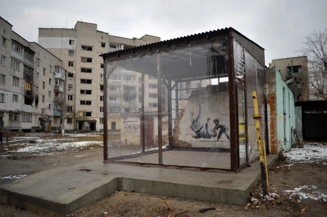 Ar šādu ložu necaurlaidīgu superstiklu Ukrainas pilsētas Borodjankas amatpersonas ir nolēmušas pasargāt angļu mākslinieka un pasaulē populārā grafiti autora Benksija darbu uz pussagrauta mūra fragmenta.