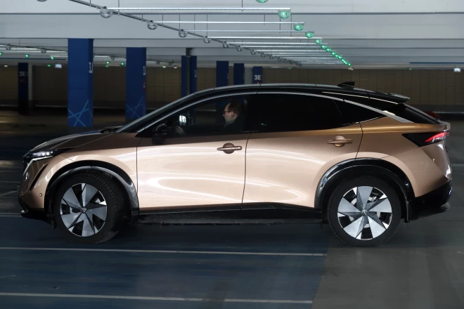 Paraugoties uz "Ariya", ir grūti noticēt, ka šis automobilis būvēts uz tās pašas platformas kā "Renault Megane E-Tech". Pārāk atšķirīgi ir šie abi auto. "Megane E-Tech" izskatās ultramoderns un teju vai kosmisks, savukārt "Ariya" robusts un, kā lai tā labāk pasaka... tāds mazliet traktorīgs. Taču Latvijas apstākļos tas drīzāk ir kompliments, nevis nopēlums. Kaut gan platforma patiešām ir viena un tā pati, "Ariya" izceļas ar paaugstinātu klīrensu, kas uz mūsu ceļiem ir liels pluss. Īpaši jau tajos gadījumos, ja radusies vajadzība nobraukt no asfalta.