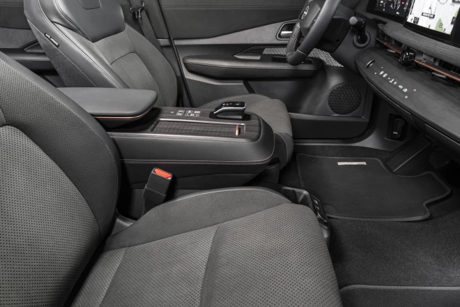 Risinājumu ar apdarē iestrādātajām pogām dizaineri ir atkārtojuši arī uz izbīdāmā roku balsta, kur zem ātrumu pārslēga ir podziņas braukšanas režīma izvēlei un zem priekšējā paneļa esošās atvilktnes atvēršanai un aizvēršanai. Jā, to dara ar īpašām pogām! Ātrumu pārslēga knibulis gan izskatās vienkārši uztupināts uz roku balsta, taču jebkurā gadījumā tas ir labāks risinājums nekā ātrumu pārslēgšana ar podziņām ar burtiem D, R un P.