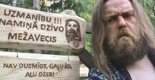 Rakstniekam Jānim Valkam patīk atšķirties: kāzās ierodas skotu svārciņos, ziemas spelgonī dzīvo mežā