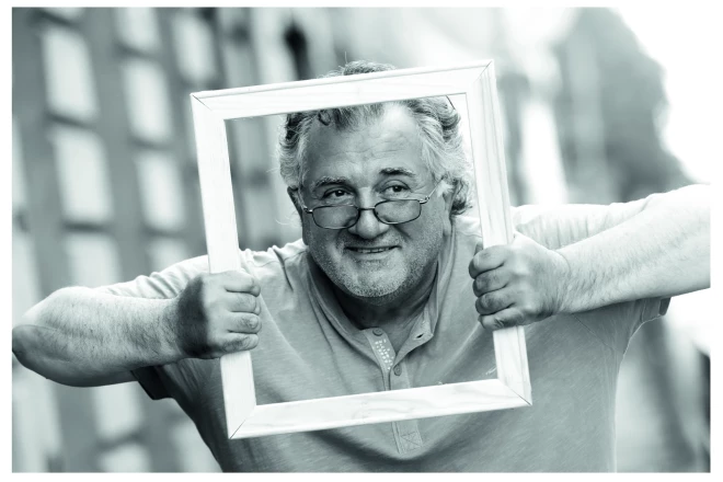 Kamēr visi tiekam sapazīstināti, fotogrāfs paguvis apdomāt, kā Avtandilu nofotografēt, un pajautā, vai gleznošanai viņam ir īpašs darba apģērbs. Neesot, bet vai tad dzeltenajam T kreklam esot kāda vaina? Camel dzeltens, dārgs, smaržo pēc dūmiem un šašlika – vakar cepuši! Pasmaržojis kreklu, Avtandils, acīs zibot smieklu velniņiem, to pasaka tik izteiksmīgi, ka visi smejamies viņam līdzi.
