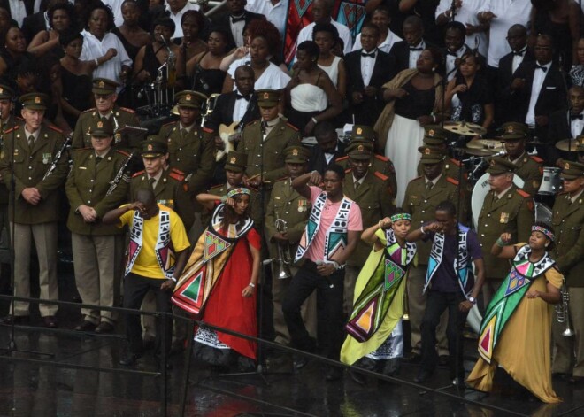 Pasākums, kura laikā līst lietus, sākās ar Dienvidāfrikas valsts himnu, kuru izpildīja koris.
