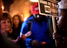Tikmēr tikai vairākus kvartālus no Baltā nama maskoti aktīvisti ielās sarīkoja grautiņu, ar āmuriem dauzot logus uzņēmumiem un apmētājot ar akmeņiem policistus.