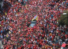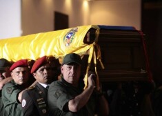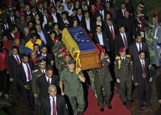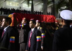 Pie vaļēja zārka atvadās no mīlētā un nīstā Ugo Čavesa. FOTO
