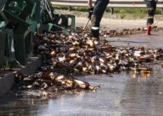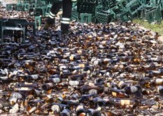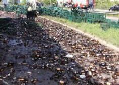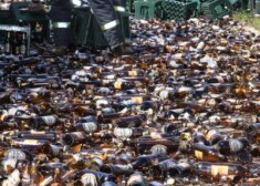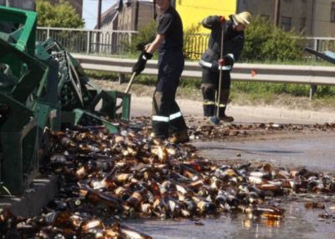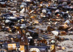 Salu tilta nobrauktuve pilna ar alus pudelēm
