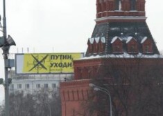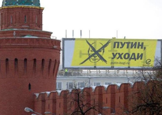 Maskavas policija noņēmusi opozīcijas aktīvistu kustības "Solidaritāte" iepretim Kremlim novietoto transparentu ar uzrakstu "Putin, ej prom".