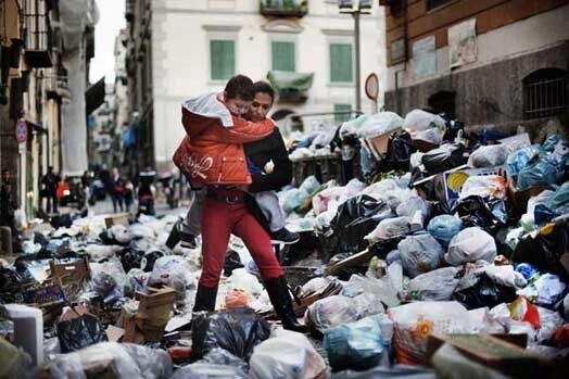 Neapole atkritumu dēļ kļuvusi par īstu izgāztuvi. Šo Itālijas dienvidu pilsētu pārpildījuši sadzīviskie atkritumi, kuru utilizēšana ir apgrūtināta pārpildīto izgāztuvju dēļ. Pilsēta nonākusi apburtajā lokā: no vienas puses, vecās izgāztuves ir pārpildītas, no otras – pret jaunu būvniecību protestē tuvumā dzīvojošie iedzīvotāji.