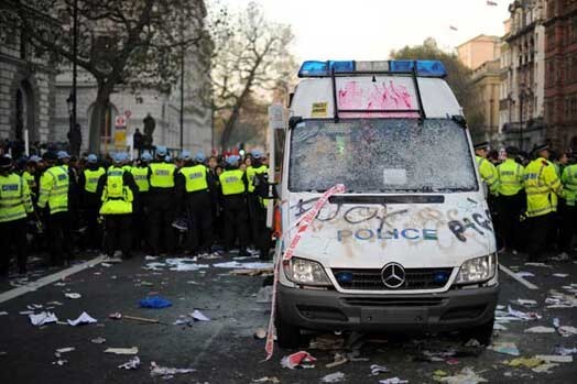 Līdzīga, tikai mazāka mēroga problēma skārusi arī Lielbritāniju. Britu studenti trešdien atkal izgāja ielās, lai protestētu pret valdības ieceri trīskāršot mācību maksu, un arī šī protesta akcija jau izvērtusies vardarbībā, pūlim uzbrūkot policijas autofurgonam, kā arī uzsākot valdības iestāžu demolēšanu. Vismaz astoņi cilvēki sadursmēs jau cietuši.
