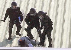 Policija pret korejiešu streikotājiem.