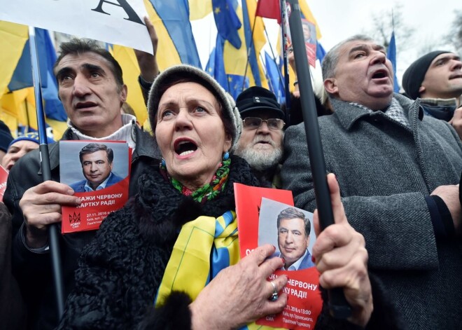 Saakašvili mītiņā aicina rīkot Ukrainā pirmstermiņa vēlēšanas