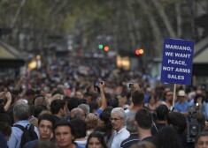 Demonstranti gāja aiz liela melnbalta transparenta, uz kura katalāņu valodā bija rakstīts "No tinc por" ("Es nebaidos").