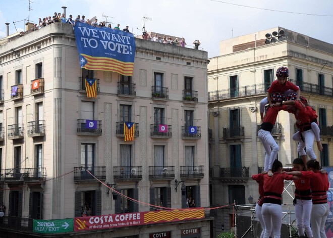 Barselonā ļaudis protestē pret aizliegumu rīkot referendumu par Katalonijas neatkarību