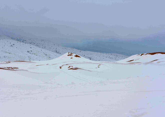 Sniegputenis Sahāras tuksnesi pārsteidzis svētdienas rītā. Alžīrijas teritorijas Ain Safras pilsētā sniegs ir reta dabas parādība, proti, šī ir trešā reize 40 gadu laikā, kad zemi klāj balta sniega kārta.