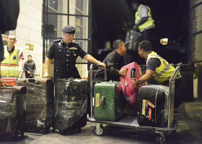 FOTO: Policija reidos Malaizijas ekspremjera mājokļos atrod desmitiem somu ar skaidru naudu un dārglietām