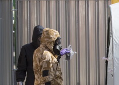 Policisti spectērpos Eimesberi pārbauda ēkas, meklējot "Novičok" pēdas