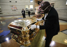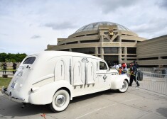 FOTO: soulmūzikas karalieni Aretu Frenklinu izvada sarkanās kurpītēs un zelta zārkā