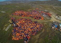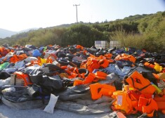 Priecīgi par ierašanos Eiropā, migranti met nost savas glābšanas vestes, kuras vilka jūras ceļojuma laikā. Lesbas salā izveidojušās līdz pat ...