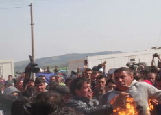 Bēgļu nometnē Grieķijā daži migranti no izmisuma sevi aizdedzina