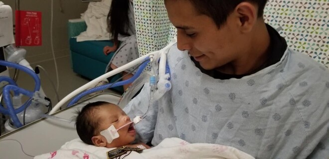 Mazulis, kurš tika izgriezts no 19 gadus vecās amerikāņu studentes vēdera, saticis savu tēvu un pirmo reizi atvēris acis