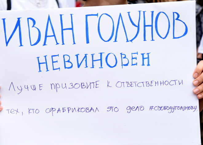 Golunovs, kurš strādā Rīgā bāzētajā krievu tīmekļa medijā "Meduza", tika aizturēts pagājušajā ceturtdienā Maskavā un viņam tika izvirzītas apsūdzības mēģinājumā tirgot narkotikas, par ko draud 10 līdz 20 gadu cietumsods, un sestdien viņam noteikts pirmstiesas drošības līdzeklis mājas arests.
