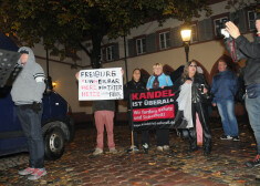 Cilvēki Freiburgā protestē pret imigrantiem, kuri pēc naktskluba apmeklējuma naktī no 13. uz 14.oktobri krūmos izvaroja 18 gadus vecu ...