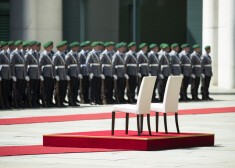Vācijas kanclere Angela Merkele ceturtdien oficiālā ceremonijā palika sēdot valsts himnu atskaņošanas laikā, šādi, kā noprotams, cenšoties nepieļaut nekontrolētas trīces atkārtošanos, kas viņu pēdējā laikā vairākkārt piemeklējusi publiskos sarīkojumos.