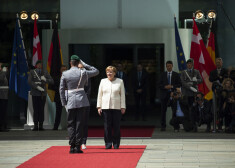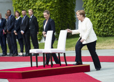 Merkele vizītē Dānijā paliek sēdot himnu atskaņošanas laikā