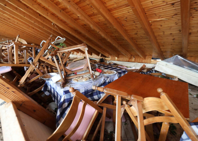 Postaža Grieķijas kūrortos pēc ārkārtīgi stipras 10 minūšu vētras