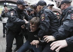 VIDEO: policists Maskavā aizturētam piketētājam kaut ko iebāž kabatā