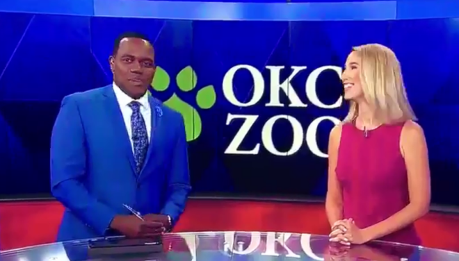 Ziņu kanāla "KOCO-TV" diktori Aleksa Hausdena un Džeisons Hakets tiešajā ēterā apsprieda sižetu par gorillu Oklahomas zoodārzā. Brīdī, kad ekrānā parādījās dzīvnieks, sieviete, vēršoties pie sava kolēģa, izteica rasistisku piezīmi.