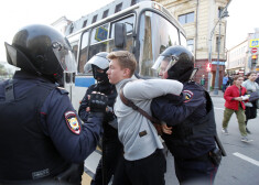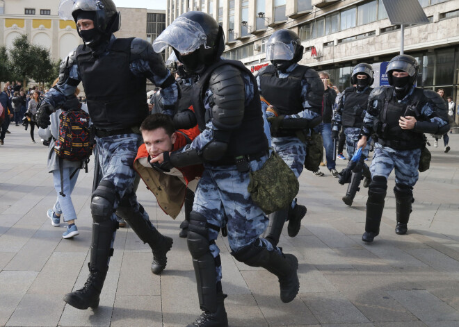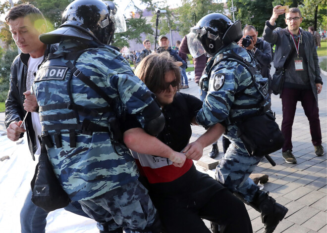 Policisti 3. augustā Maskavas centrā aiztur protestētājus un žurnālistus