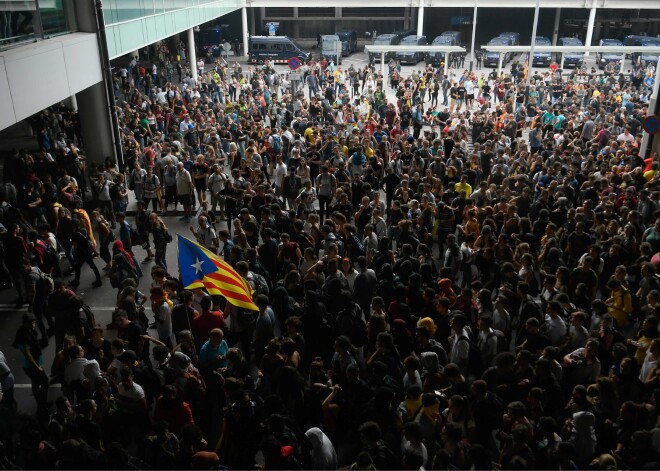 Tūkstošiem protestētāju bloķē Barselonas lidostu, autoceļus un vilcienu satiksmi