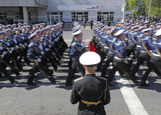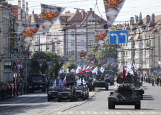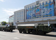 Krievijas Baltijas jūras kara flote trešdien 9.maija militārajā parādē Kaļiņingradā demonstrēja operatīvi taktiskos raķešu kompleksus "Iskander-M".