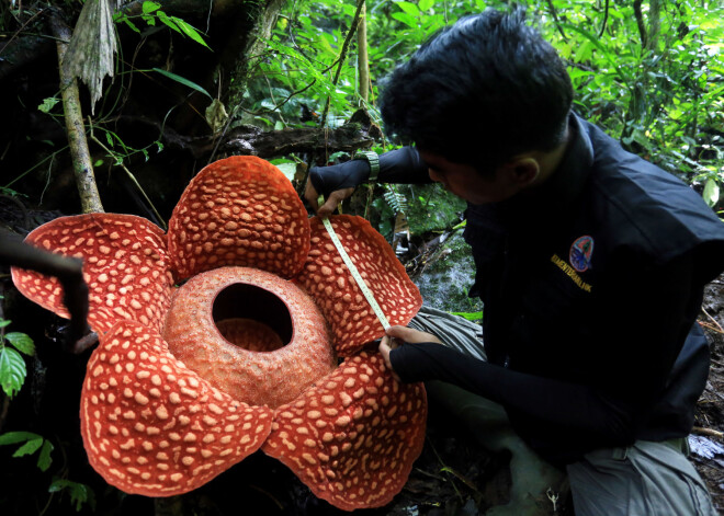 Indonēzijā uzziedējusi 117 cm plata spilgti sarkanas krāsas puķe, kas tiek uzskatīta par vienu no lielākajiem ziediem pasaulē.
