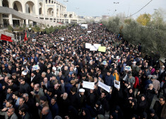 Skandējot "Nāvi Amerikai!" un turot rokās nogalinātā ģenerāļa attēlus, protestētāji nobloķēja ielas vairāku kvartālu garumā.