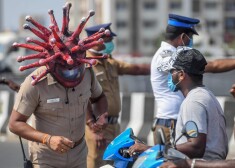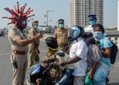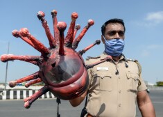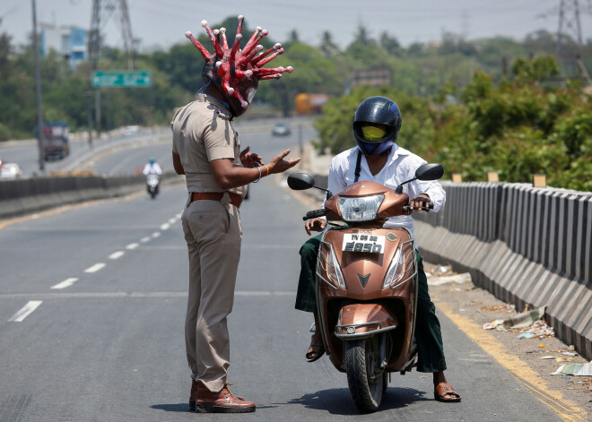 Indijā kārtību uzrauga policists ar ķiveri koronavīrusa atveidā