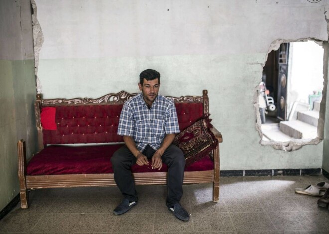 Dēlus un sievu zaudējušais sīrietis atgriežas sabombardētajā mājā Kobanē