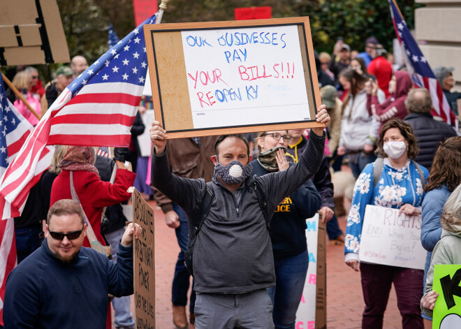 Amerikāņi protestē pret pārvietošanās aizliegumu pandēmijas laikā
