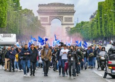 Vairāki desmiti policistu bloķēja satiksmi Elizejas laukos, sarīkojot nesankcionētu gājienu, kura laikā viņi nesa plakātu: "Nav policijas, nav miera!"
