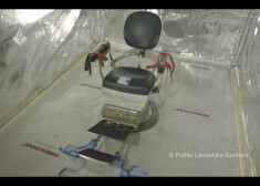"Katrā konteinerā pie griestiem un grīdas piestiprināti roku dzelži, lai aiz tiem kādu varētu piekarināt," teikts policijas paziņojumā. "Telpas noklātas ar trokšņus izolējošiem paneļiem un siltumizolējošo foliju." Vienā no telpām atradies arī zobārstniecības krēsls ar kāju un roku siksnām. Kratīšanas laikā kādā mājā Roterdamā atrasti arī 24 kilogrami psihoaktīvās vielas MDMA.
