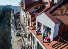Fotogrāfs ar dronu priecīgā projektā iemūžina, kā ģimenes aizvada karantīnas laiku Lietuvā