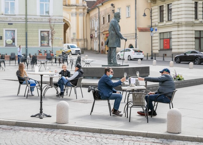 Karantīnas nogurdinātie Viļņas iedzīvotāji priecīgi, ka atkal atļauts apmeklēt āra kafejnīcas