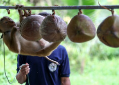 Pasaule piesaka karu Taizemes kokosriekstiem, jo tos novāc nežēlīgā veidā. FOTO