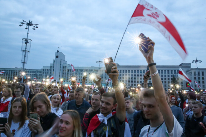 Minskas Neatkarības laukumā ceturtdienas vakarā daudzi tūkstoši cilvēku sapulcējās kārtējā protesta mītiņā, pieprasot prezidenta Aleksandra Lukašenko atkāpšanos un jaunu vēlēšanu sarīkošanu.
